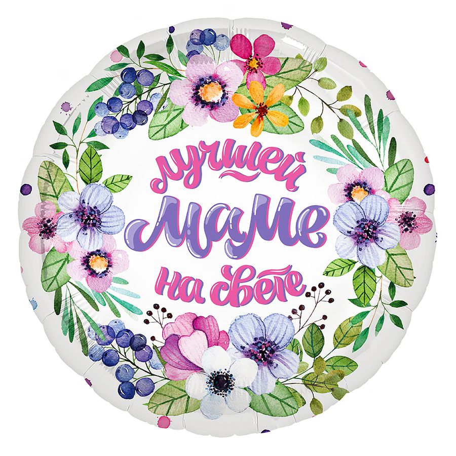 К 18"/46 см, Круг, Лучшей в мире маме, 1 шт. (В упаковке)