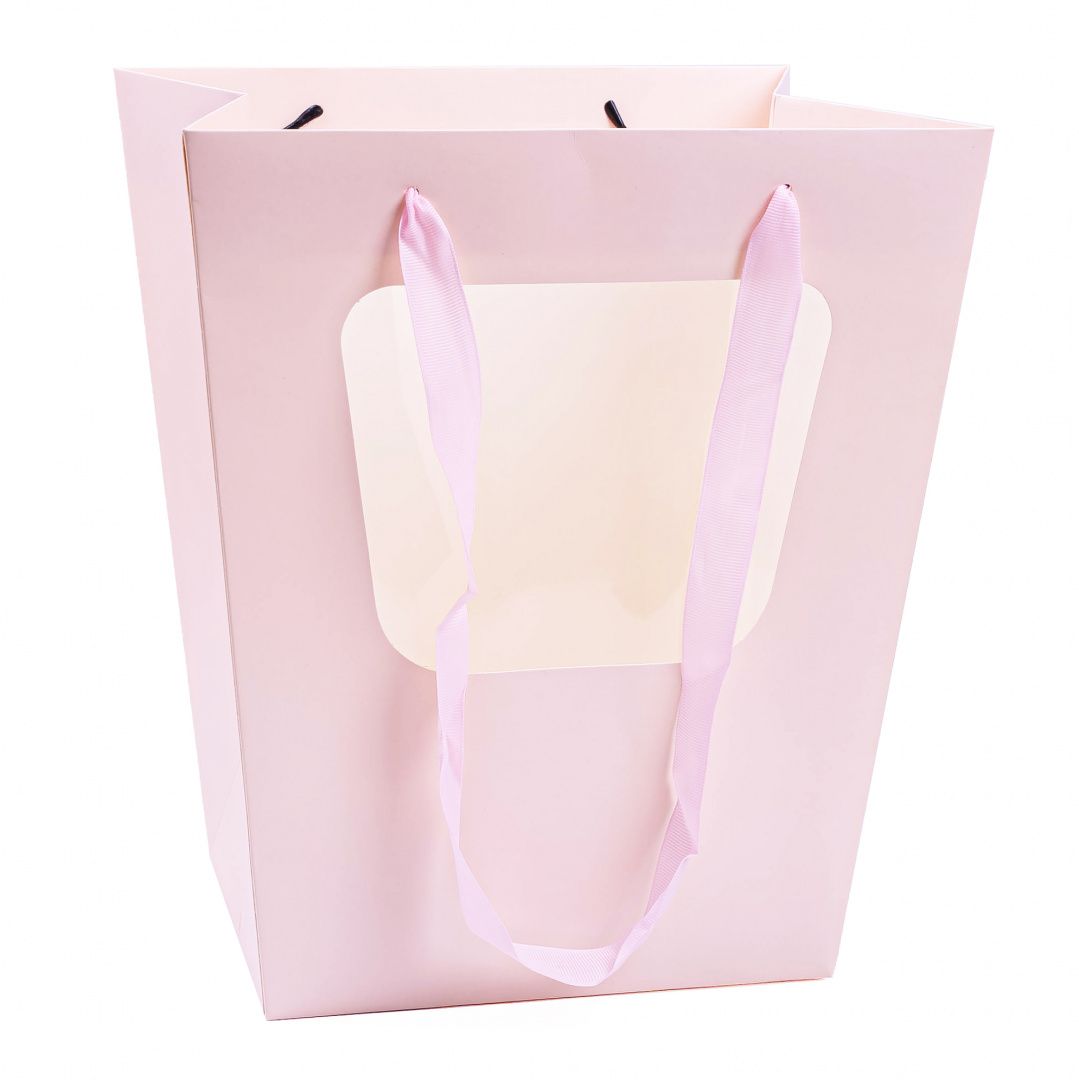 Читать все статьиПакет под цветы с окошком Трапеция Розовая 26*20*30