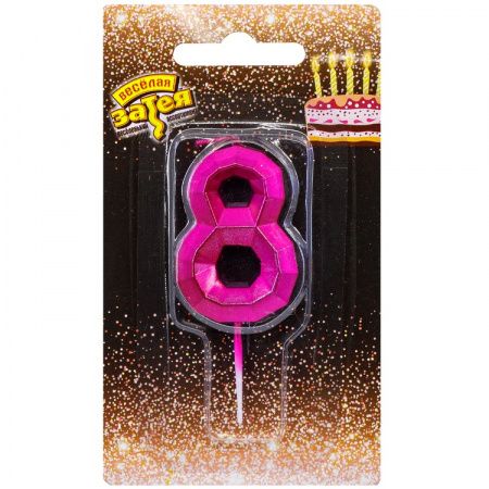 Читать все статьиСвеча цифра Диамант Маджента №8 4,5см/V